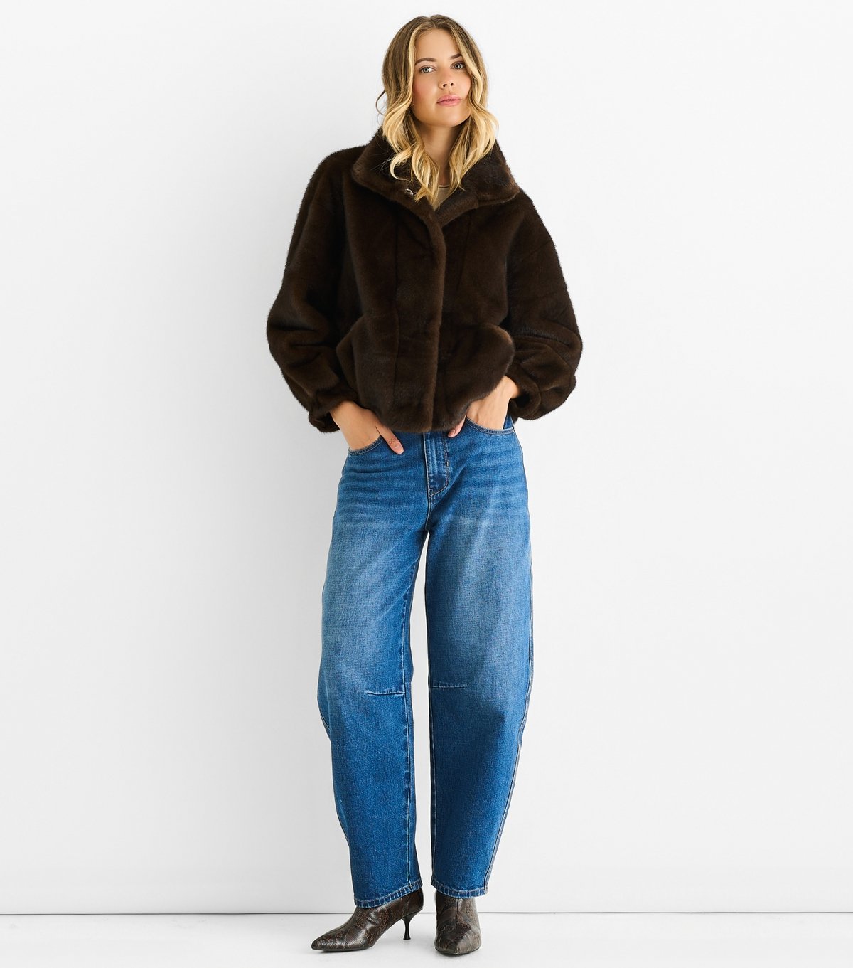 Luxurious brown faux fur jacket by Gini London, perfect for chilly evenings or adding a touch of glamour to everyday outfits. The relaxed fit and full-length sleeves provide warmth and style.