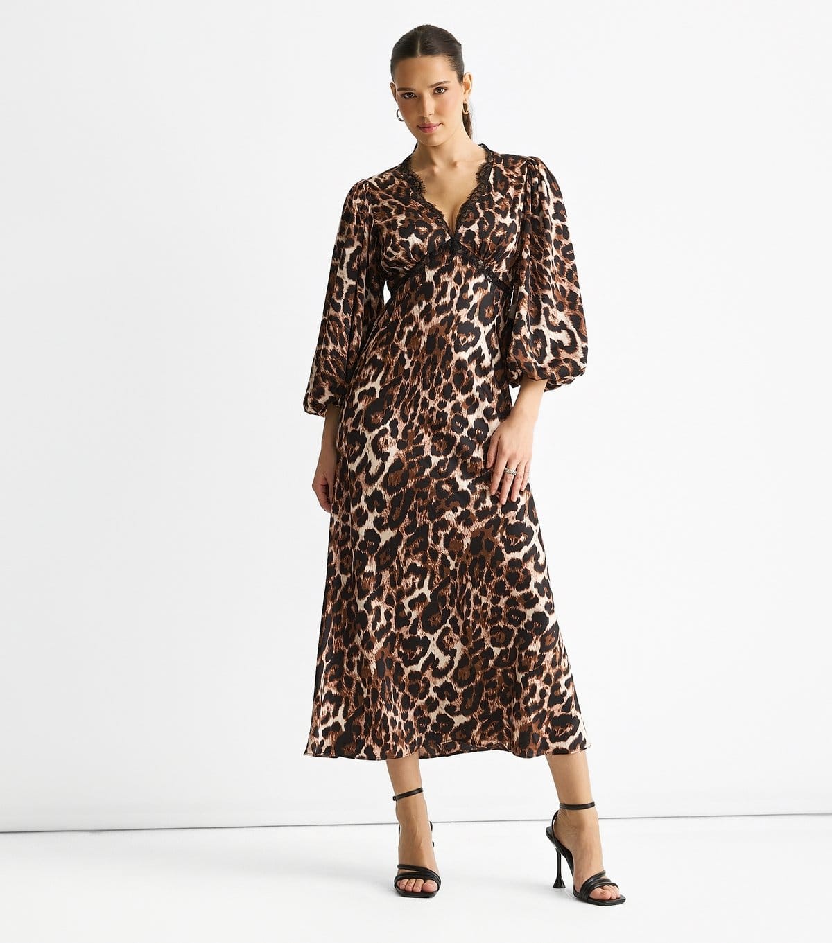 Gini LondonGini London Brown Leopard Print Midi Dress
