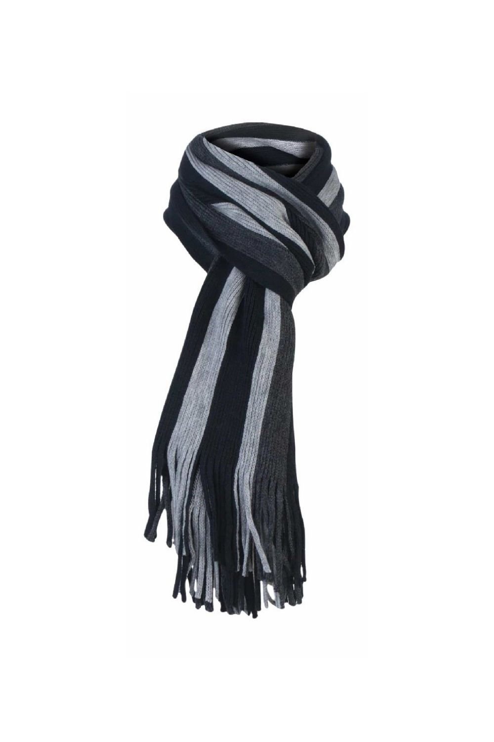 Stay warm and stylish with the Giovanni Cassini Men's Winter Scarf, inspired by Italian design. Crafted from soft, thick acrylic knit, this scarf is gentle on the skin and avoids any itchy spots, providing all-day comfort in cold weather. The scarf features a classic striped pattern in black and grey.