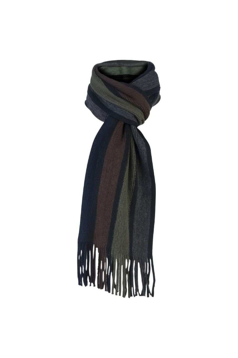 Stay warm and stylish with the Giovanni Cassini Winter Scarf for men. Crafted from soft, thick acrylic knit, this scarf is gentle on the skin and avoids any itchy spots, providing all-day comfort in cold weather. The scarf features a classic striped pattern in brown, green, and navy.