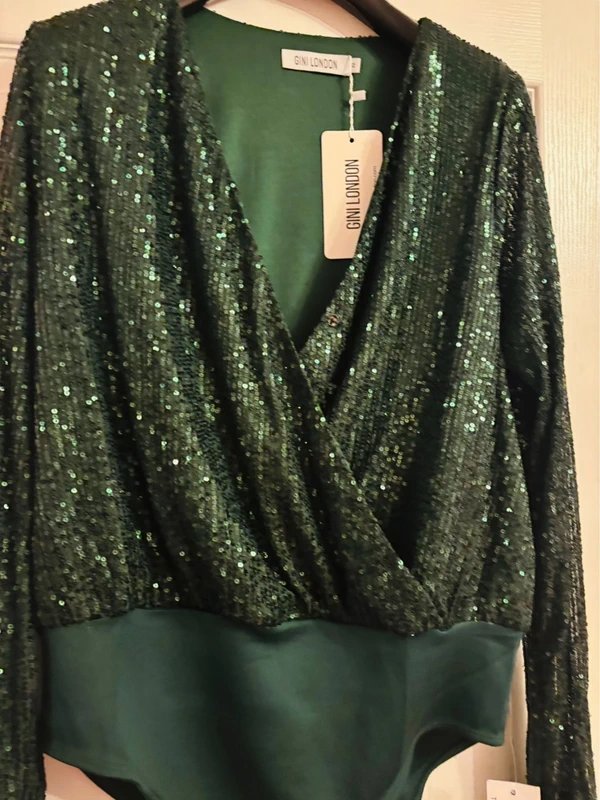 The Girl in Mind Dark Green Sequin Bodysuit is ideal for party, wedding-guest, evening.