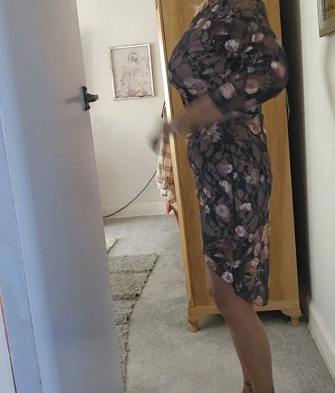 A stunning bodycon-style dress featuring a rich, romantic floral print layered over black lace. This dress has elegant 3/4 length sheer sleeves, a flattering tailored fit, and a slightly dipped hemline at the front.