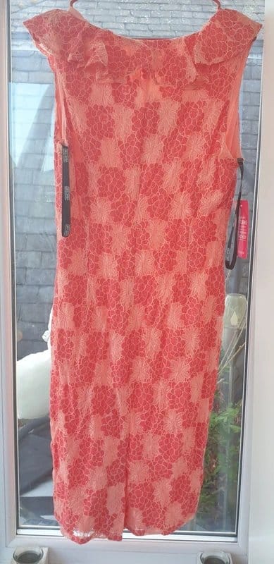 The Girls On Film Coral Lace Pencil Dress is ideal for summer, garden party, beach.