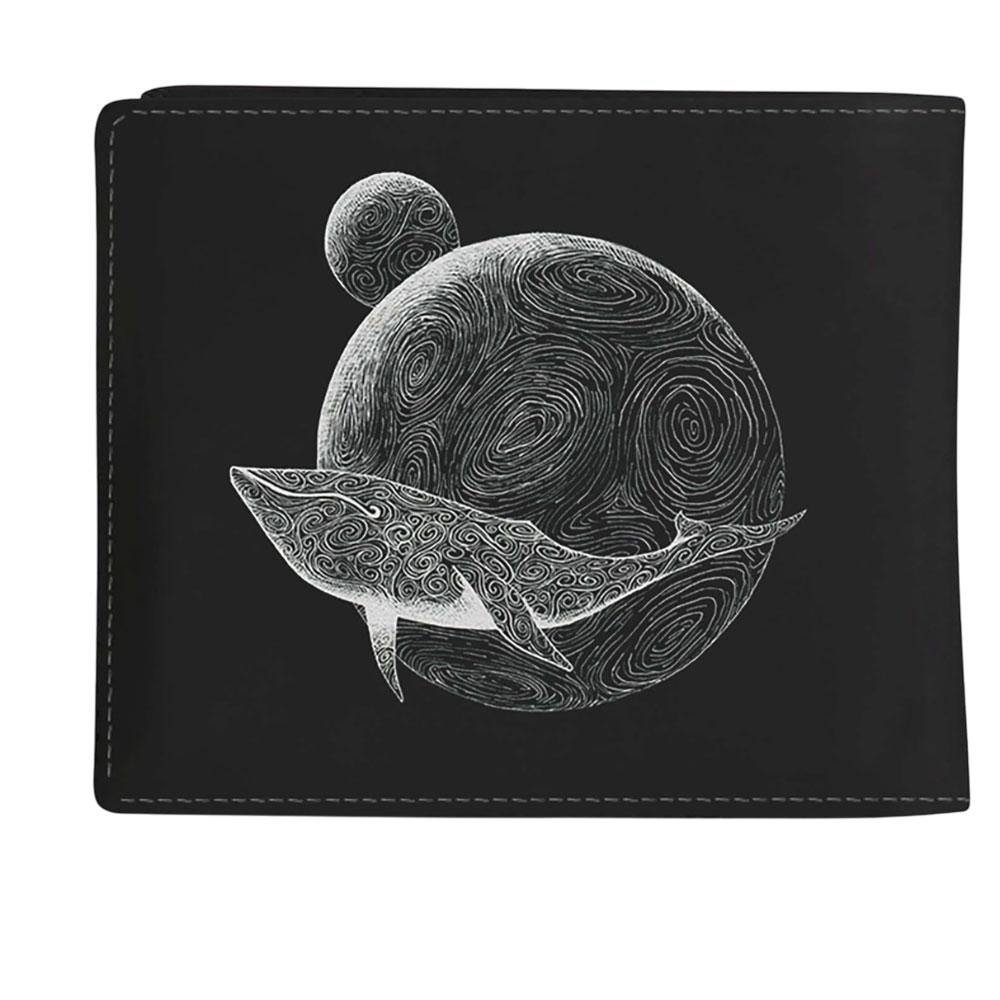 Stylish black polyurethane wallet featuring a flying whale design. Durable and officially licensed, it includes 1 main compartment and 5 card slots. Ideal for everyday use with its sleek and modern look.