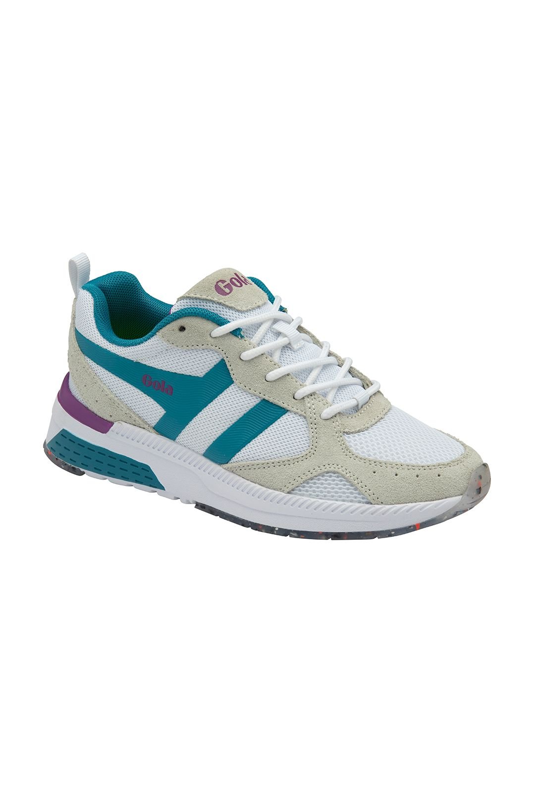 Stylish white mesh running trainers by Gola. Featuring a breathable mesh and suede upper, these trainers keep your feet cool and comfortable. Ideal for workouts and casual wear.