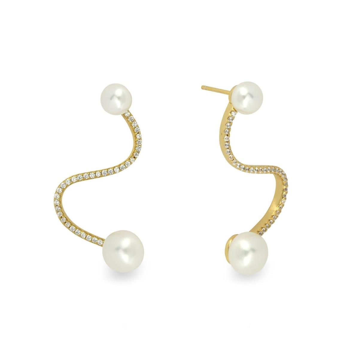The Gold Trip Gold Pearl Wave Earrings is made from zircon, sterling silver, pearl.
