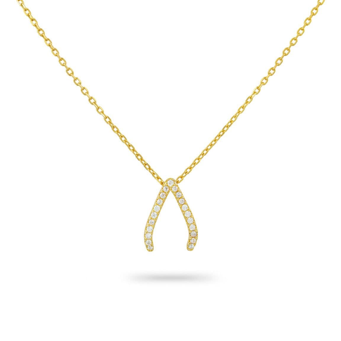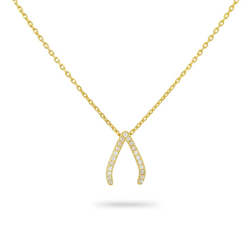 The Gold Trip Gold Wishbone Necklace with Cubic Zirconia is made from zircon, sterling silver.