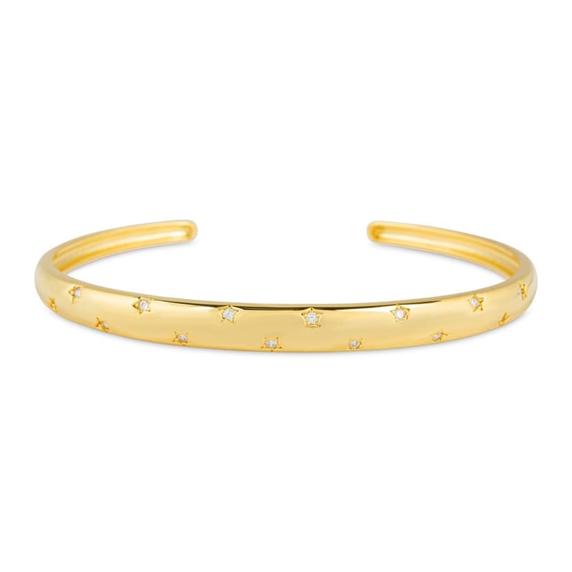 The Gold Trip Gold Starry Night Bangle in Gold is made from zircon, sterling silver, gold.