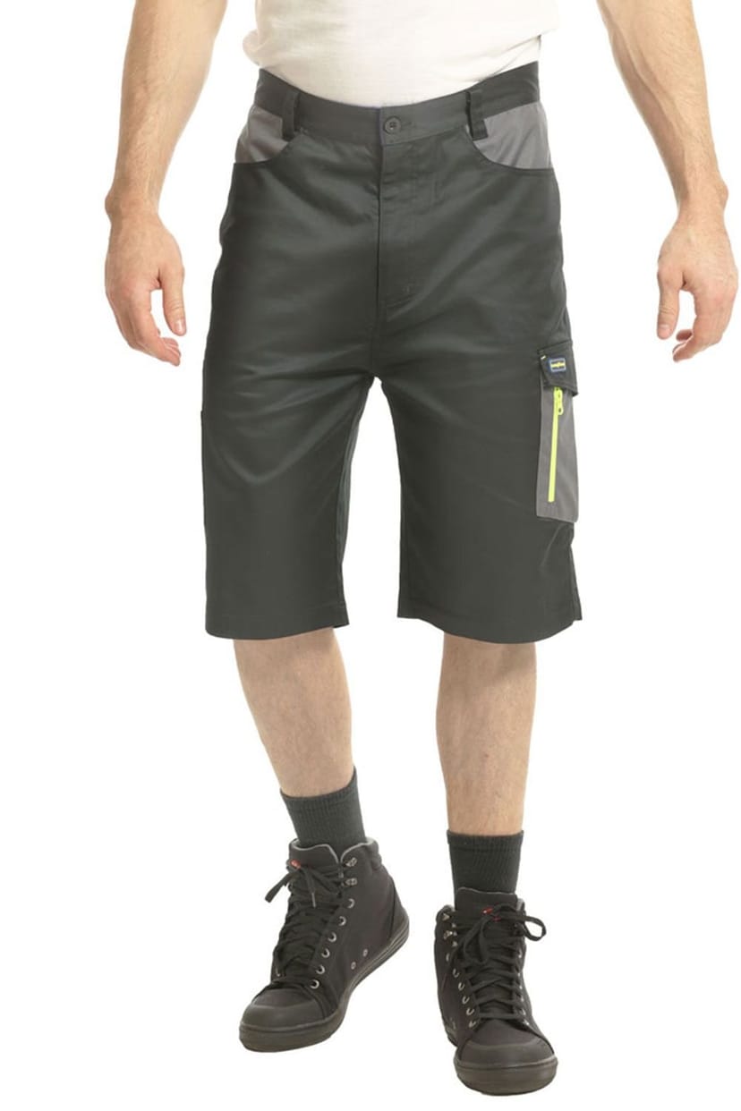 Versatile and durable Goodyear cargo shorts in black stretch fabric. Designed for work environments with multiple pockets and double stitching for added strength. Perfect for active days.