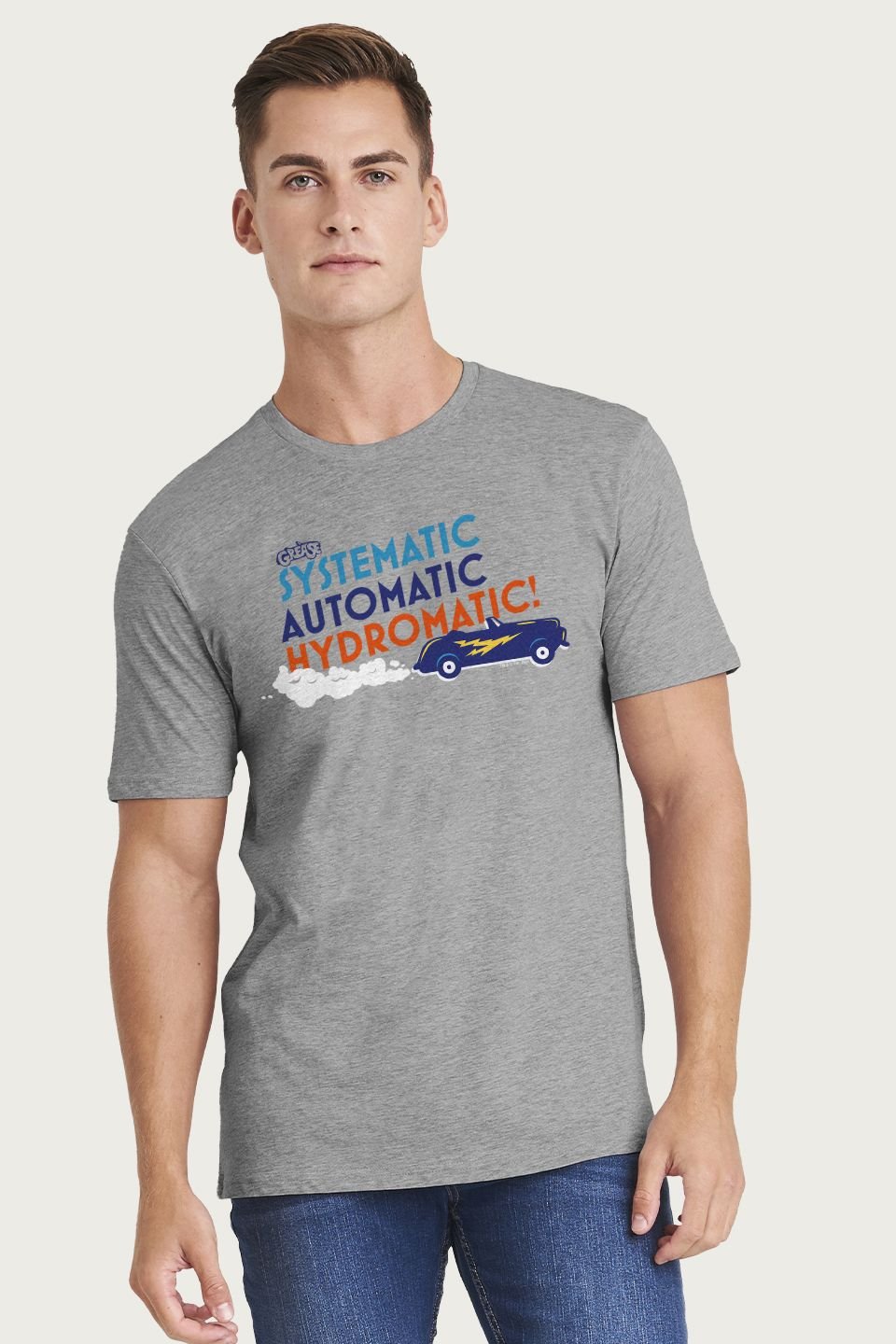 The Grease Men's d Lightnin' Systematic Lyrics T-Shirt in Mid Grey is available in sizes 2XL, L, M, S, XL.