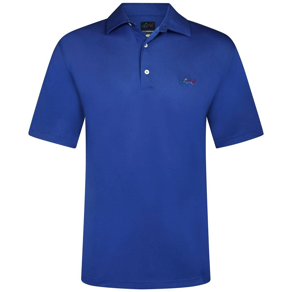 The Greg Norman Men's 'Shark' Core Polo Shirt in Blue is made from cotton, polyester.