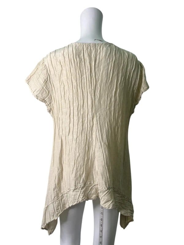 GrizasGrizas Beige Linen Short Sleeve Crinkle T-Shirt