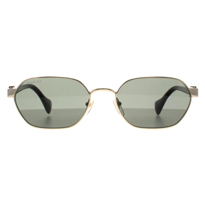Iconic Gucci Oval GG1593S sunglasses in gold grey. Featuring a unique frame design and signature Gucci elements, these sunglasses offer a refined, luxurious aesthetic while providing excellent sun protection.