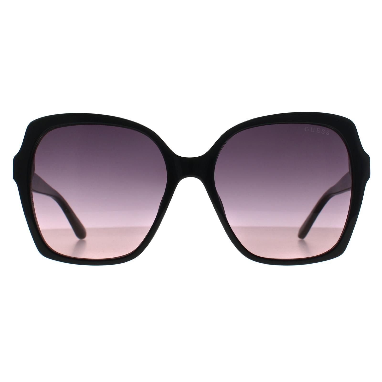 Modern Butterfly Black Purple Gradient sunglasses by Guess. Featuring a sculpted acetate frame and refined metal temple accents, these sunglasses offer lightweight comfort and durability. The clean lines and subtle Guess branding create a confident look.