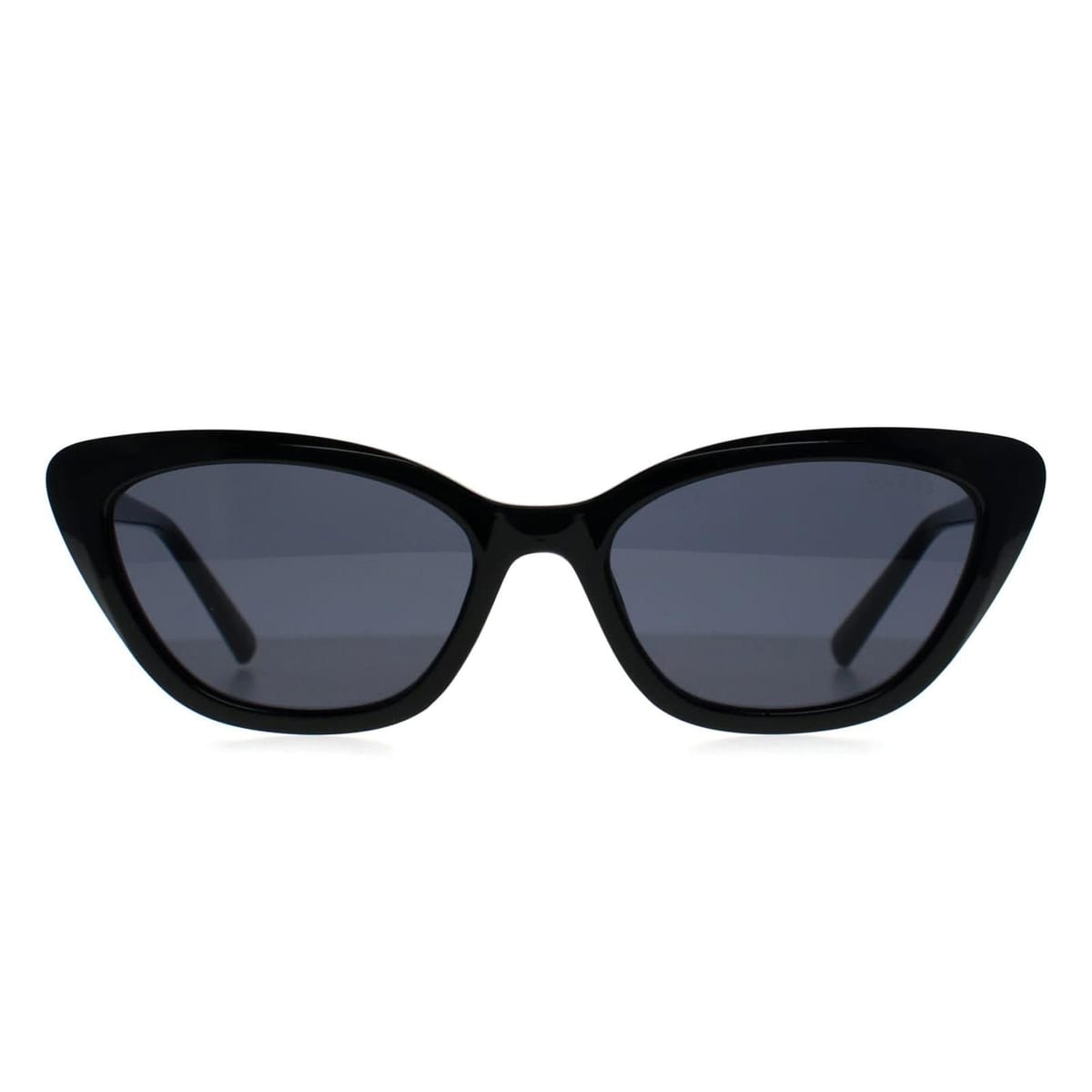 Chic Cat Eye Shiny Black Grey GF6197 Sunglasses from Guess. These sunglasses feature a sleek, cat-eye frame with a shiny black and grey finish. Ideal for adding a touch of glamour to any outfit.