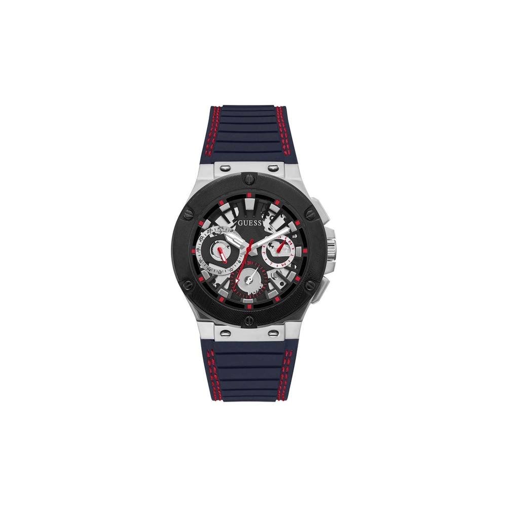 The Guess Men's GW0487G1 Sport 44mm Quartz Watch in Blue is made from rubber, stainless steel.