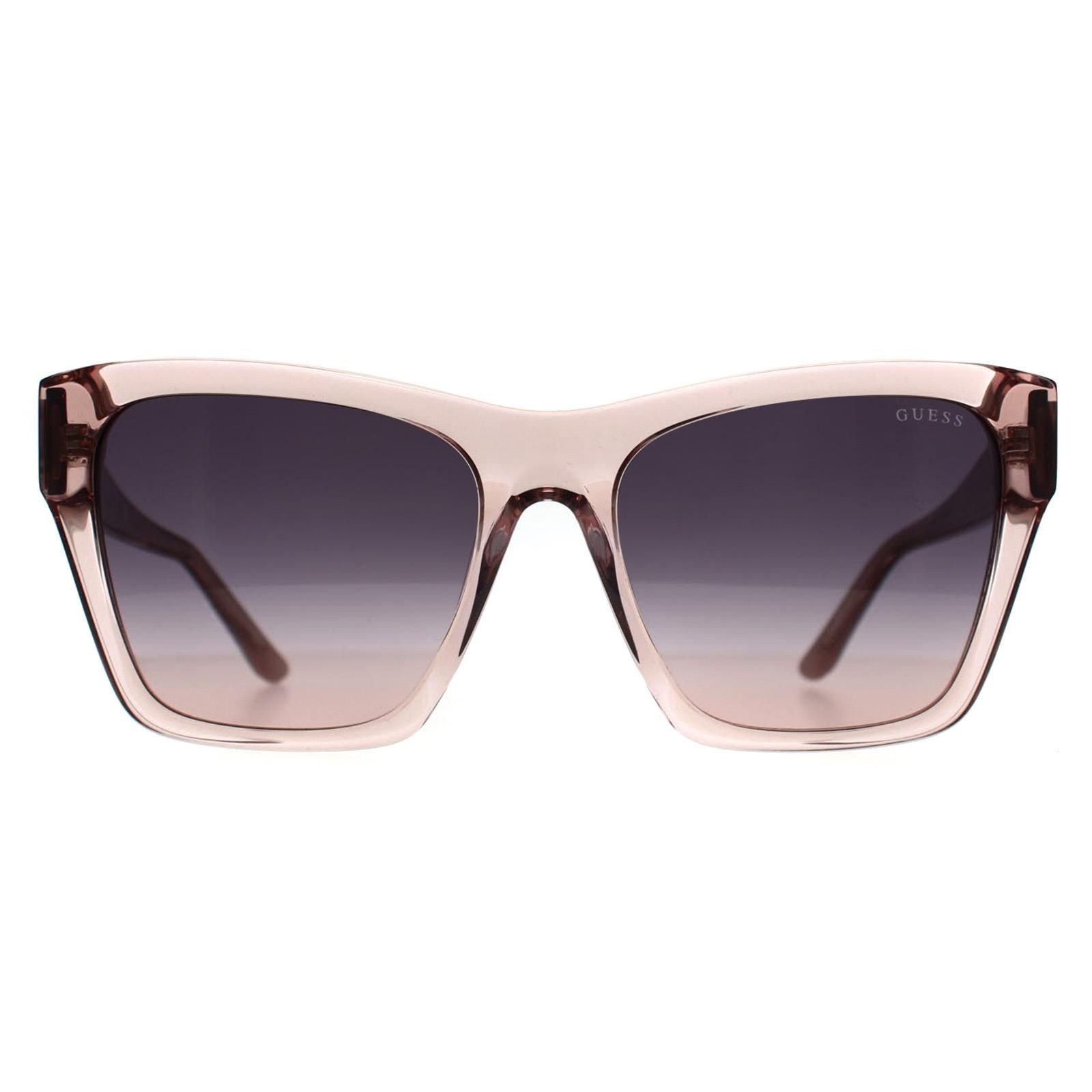 The Guess Women's Square Shiny Beige Violet Gradient Sunglasses is made from plastic.