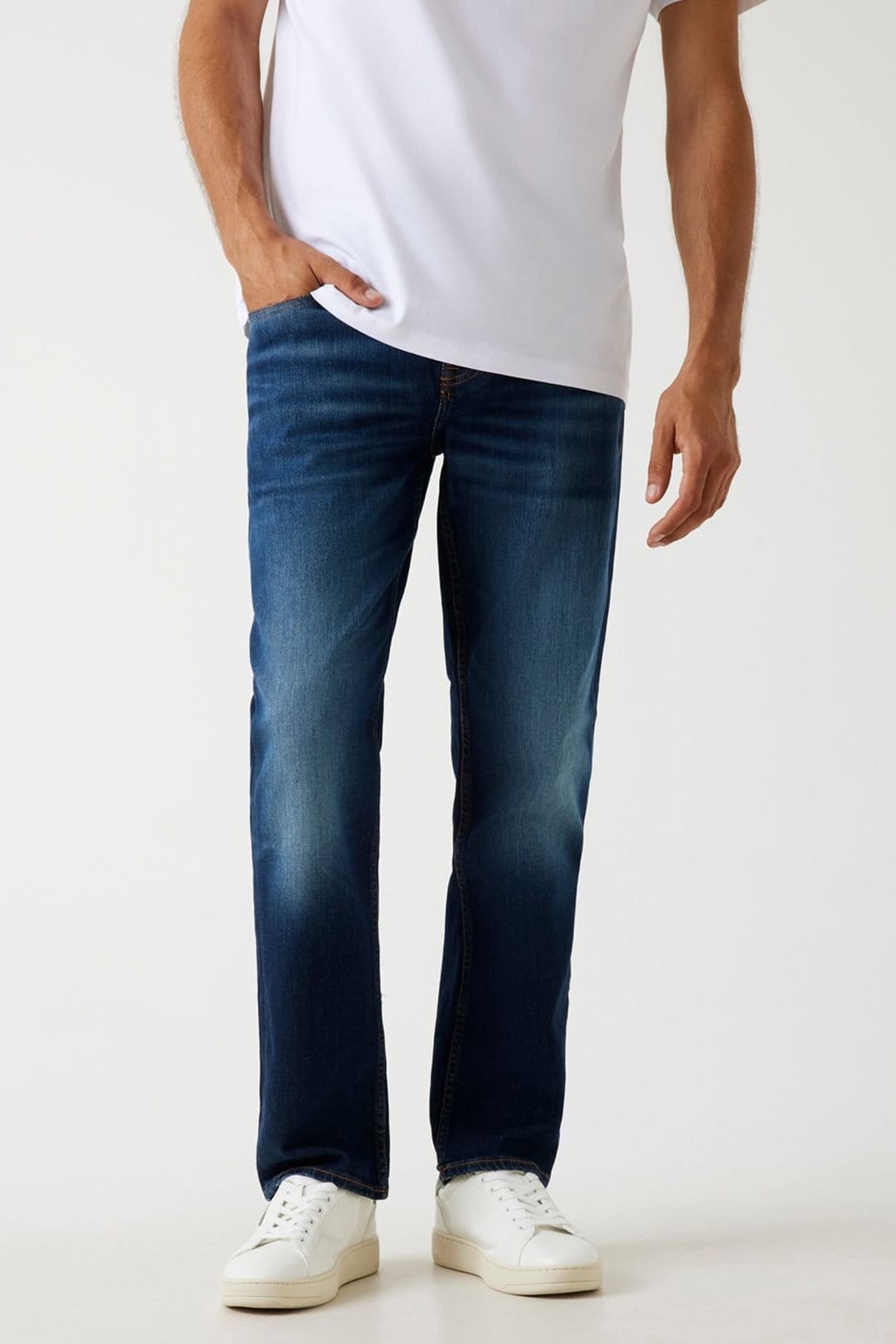 The Guess Men's Dark Blue Denim Straight-Leg Jeans is ideal for everyday, casual, smart-casual.