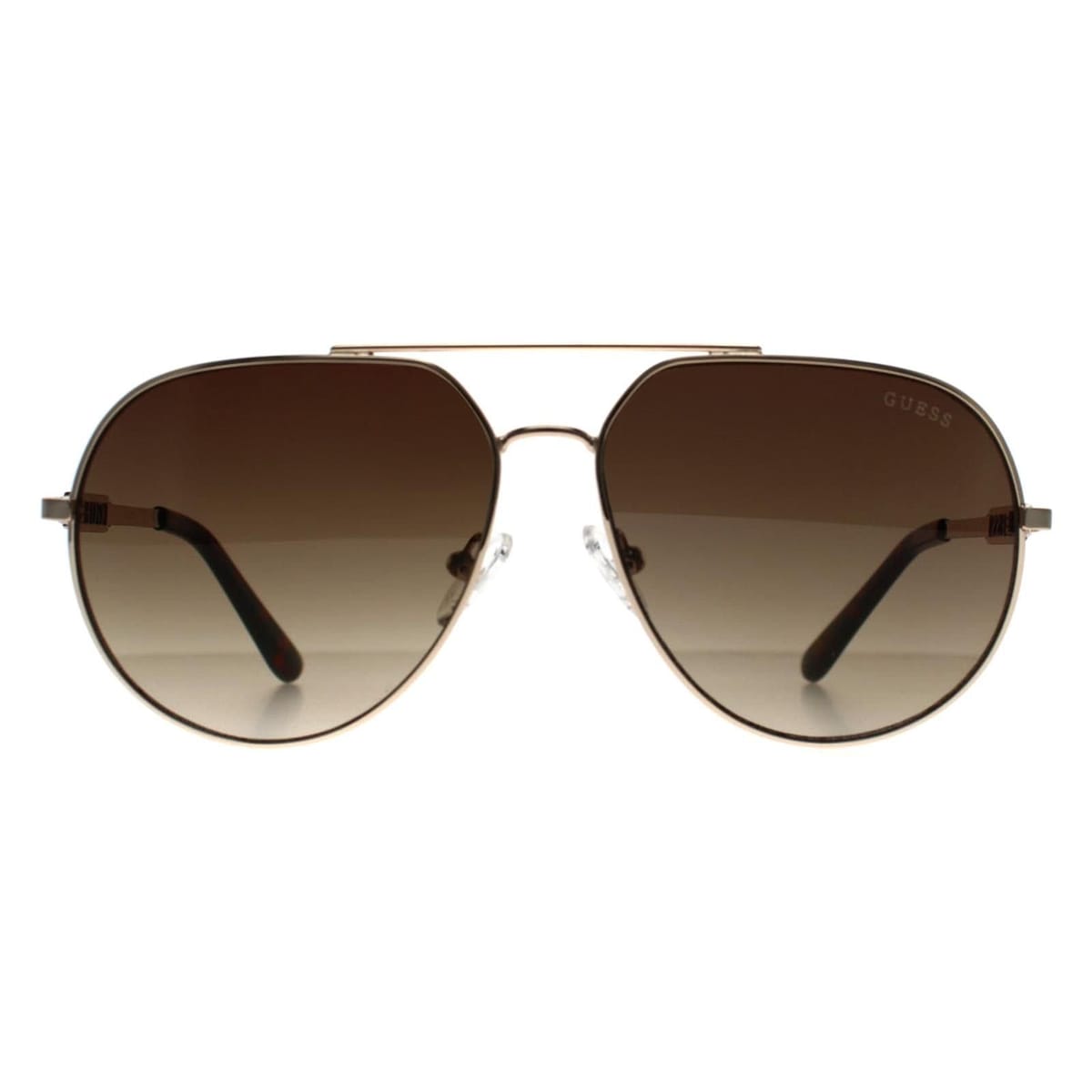 Chic aviator sunglasses from Guess in a gold brown hue. Featuring smooth lines and a flattering frame, these sunglasses are perfect for everyday wear, adding an elevated touch to any outfit.