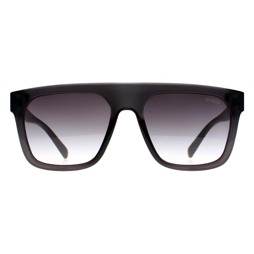 Sleek rectangle grey gradient sunglasses with a refined metal frame. Lightweight and comfortable, these glasses offer a secure fit and subtle luxury with the signature Guess branding. Ideal for a stylish, urban look.