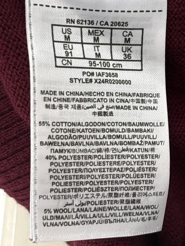 The Guess Burgundy Cotton-Polyester-Wool V-Neck Sweater is available in sizes M.