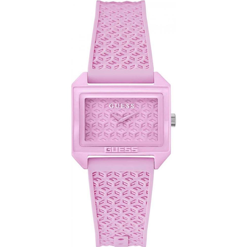 Stylish pink Guess Mod Pop 33mm Quartz Watch with a modern geometric pattern. The watch features a durable and long-lasting design, perfect for everyday wear.