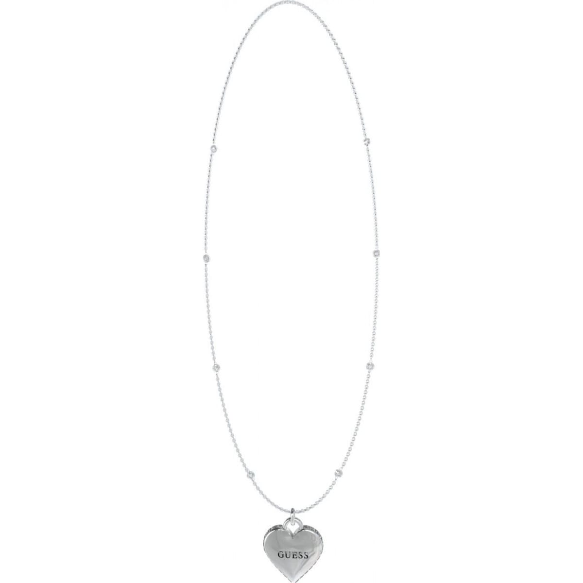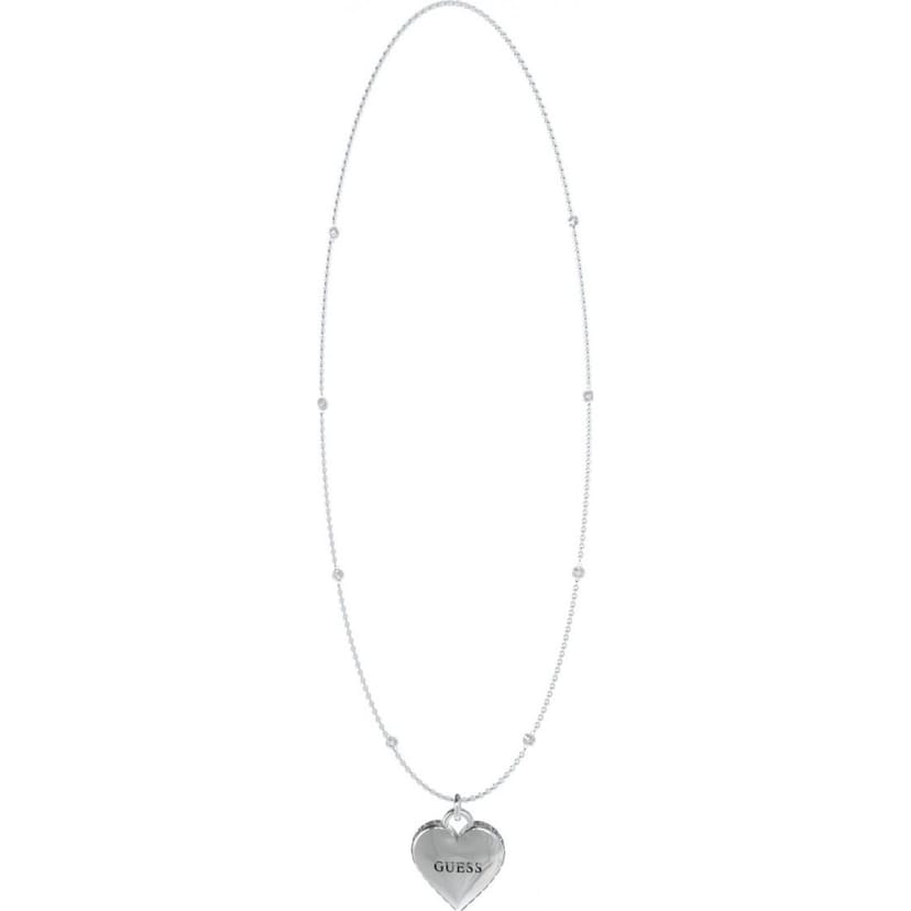 Elegant silver heart pendant necklace from Guess. Featuring a heart-shaped pendant with the brand name engraved, this necklace is perfect for adding a touch of sophistication to any outfit.
