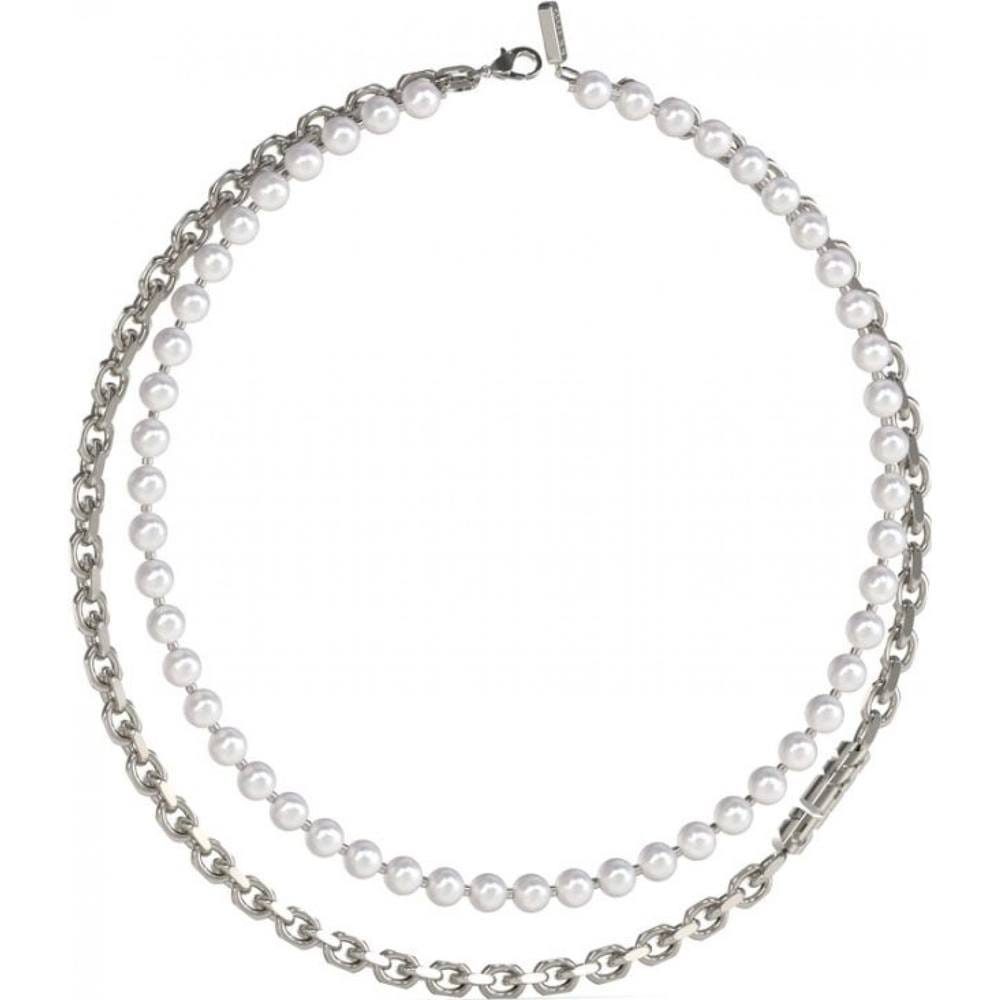 Elegant silver chain necklace from Guess featuring a row of pearls for a touch of sophistication. Perfect for adding a classic charm to any outfit.