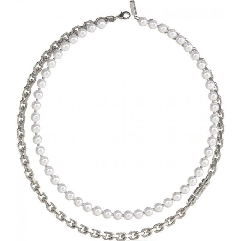 The Guess Silver Pearl and Chain Necklace is made from silver, pearl.