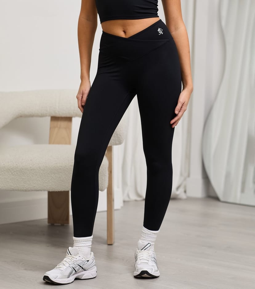 The Gym King Black Wrap Over Leggings is ideal for workout, casual, athleisure.