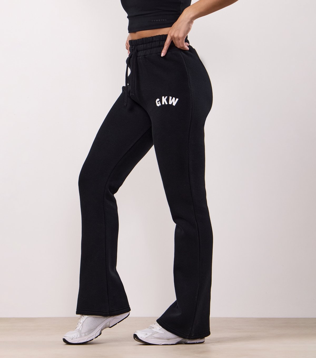 Upgrade your loungewear with these black cotton mix jersey flared joggers from Gym King. Featuring a small GKW embroidered logo, these joggers are perfect for a casual, sporty look.
