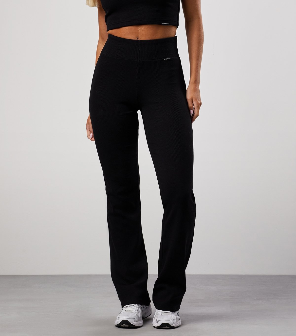 Stylish black ribbed leggings by Gym King with a flared leg design. Perfect for athleisure wear, these leggings feature a high waist and small logo detailing. Ideal for gym sessions or casual outings.