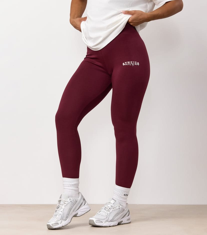 Stylish burgundy jersey leggings by Gym King. Designed for comfort and style, these leggings feature a slim fit and a Gym King logo on the side. Ideal for activewear and casual wear.