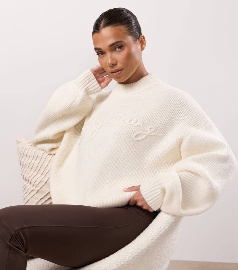 The Gym King Cream Rib Knit Sweatshirt is available in sizes 10, 12, 14, 16.