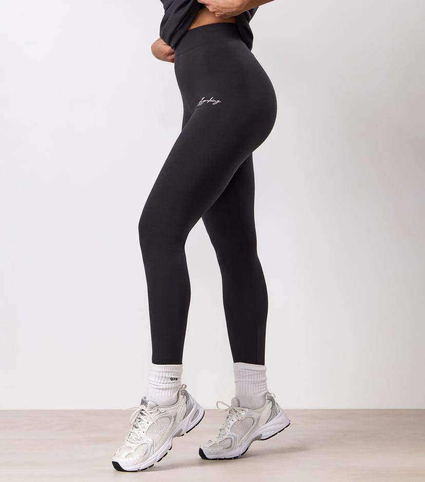 Stylish and comfortable dark grey leggings by Gym King. Designed for workouts or casual wear, these high-waisted leggings offer a flattering fit and pair well with your favourite trainers.