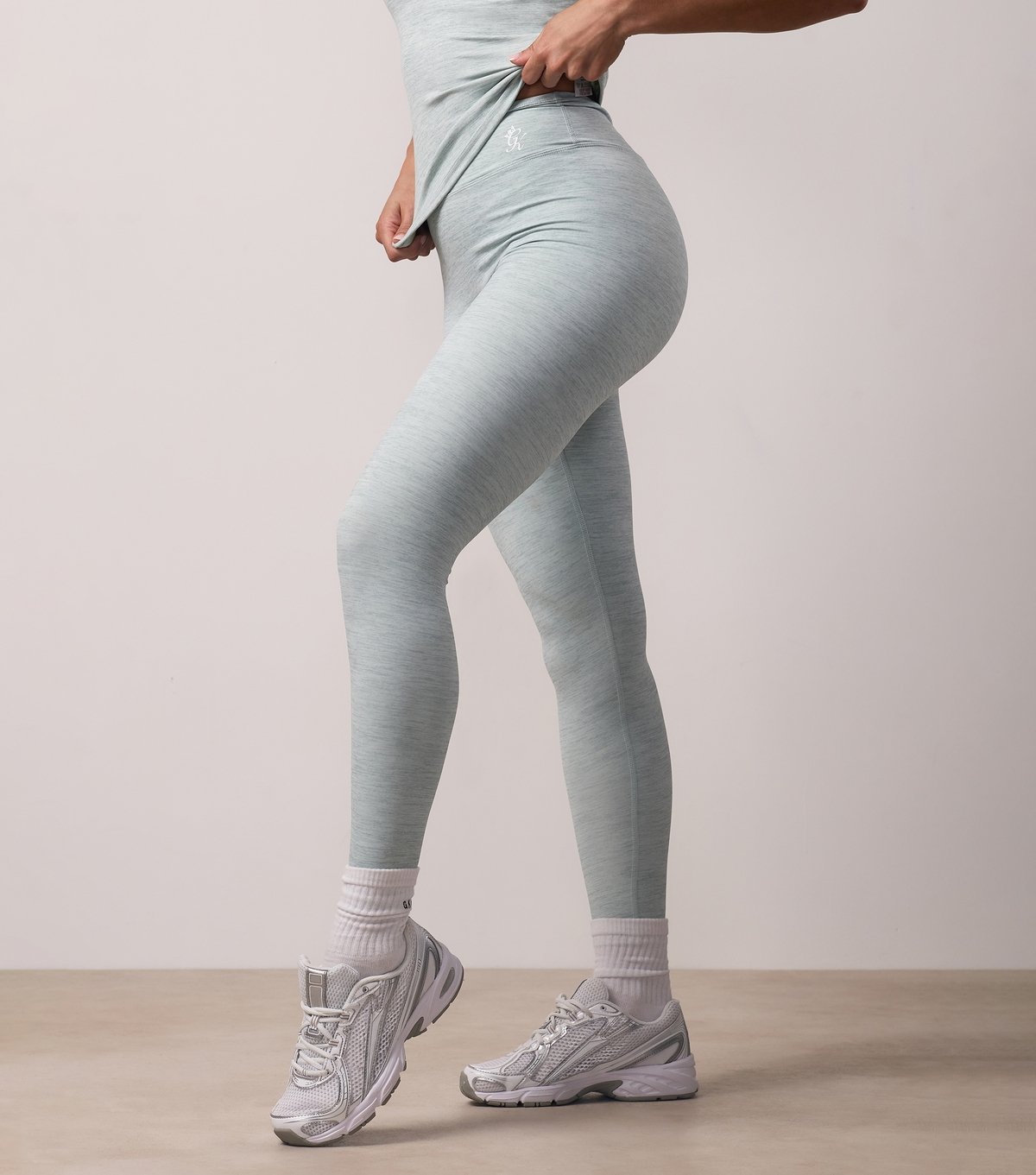 Stylish green jersey leggings by Gym King with a slim fit and full length. Featuring a scrunched back design and logo print, these leggings are perfect for activewear.