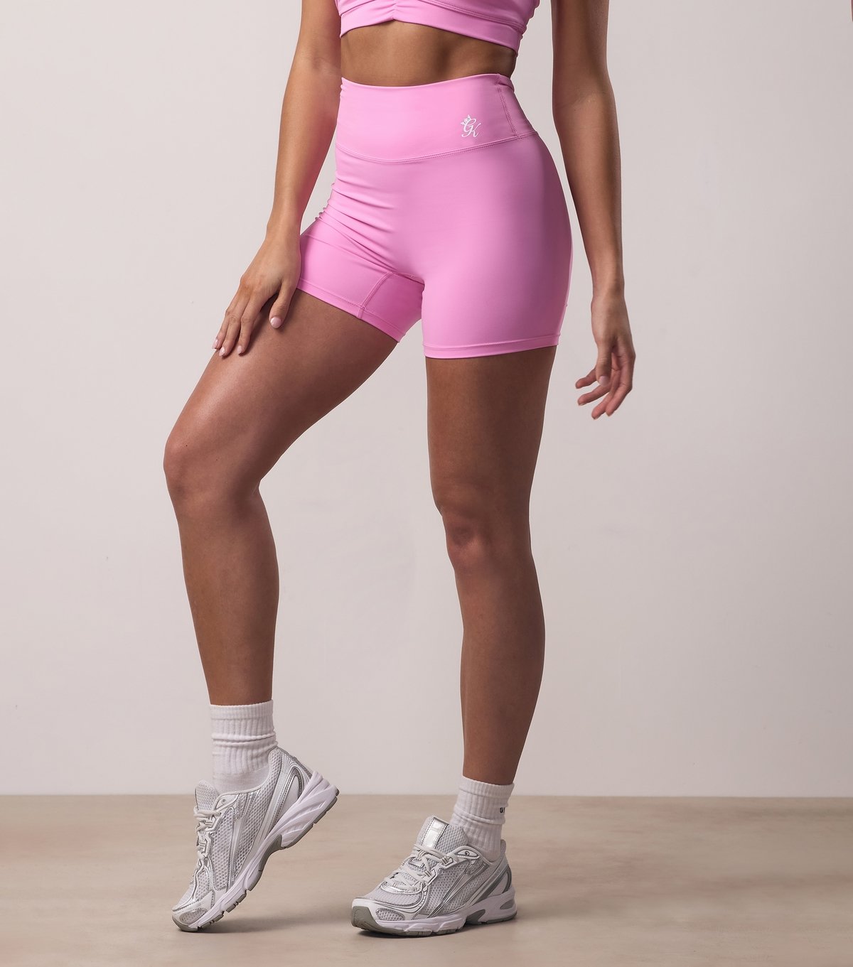 The Gym King Pink Jersey Scrunched Back Shorts is available in sizes 10, 12, 14, 16, 18, 8.