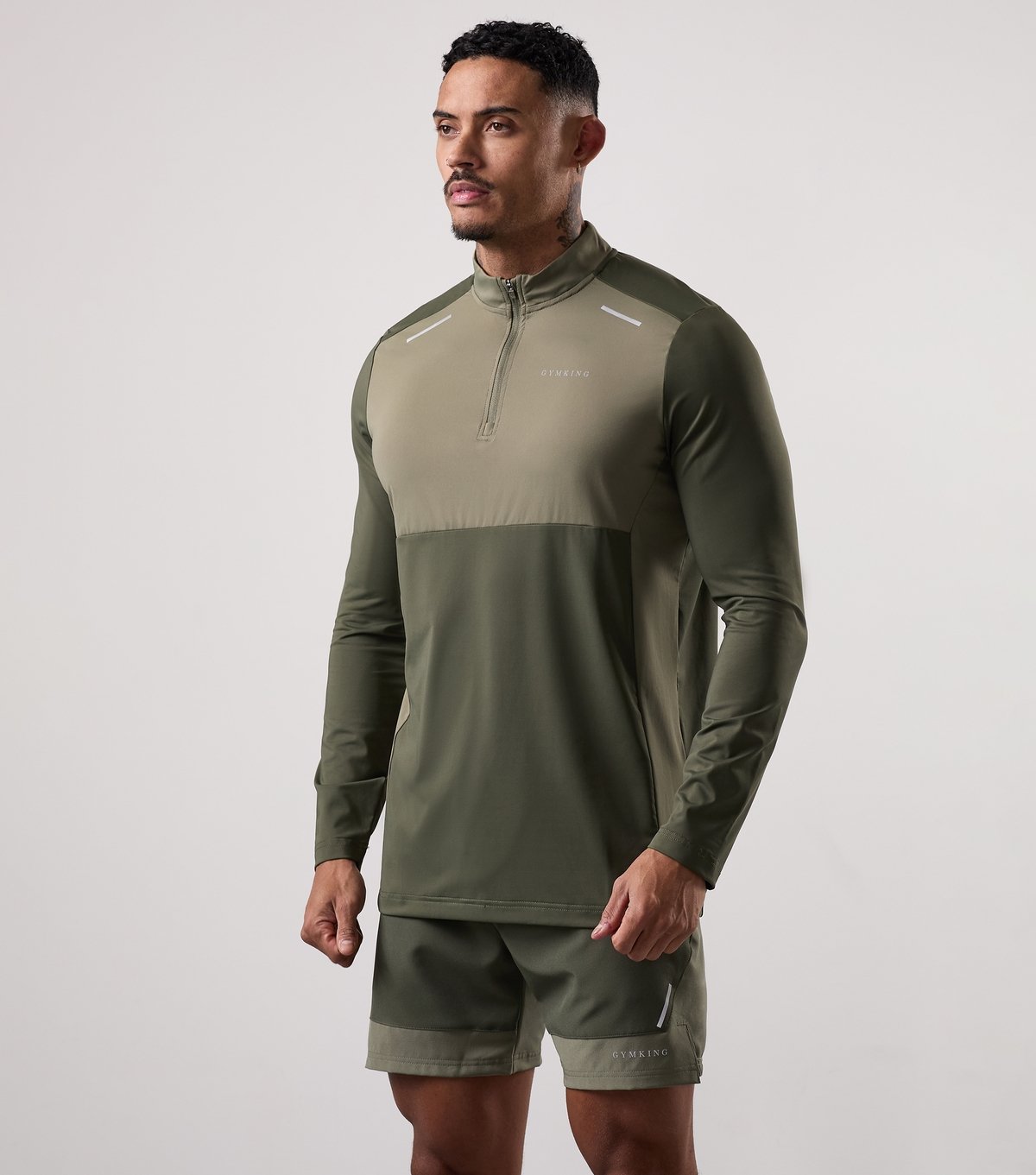The Gym King Olive Green Quarter Zip Top is ideal for activewear, casual, everyday.