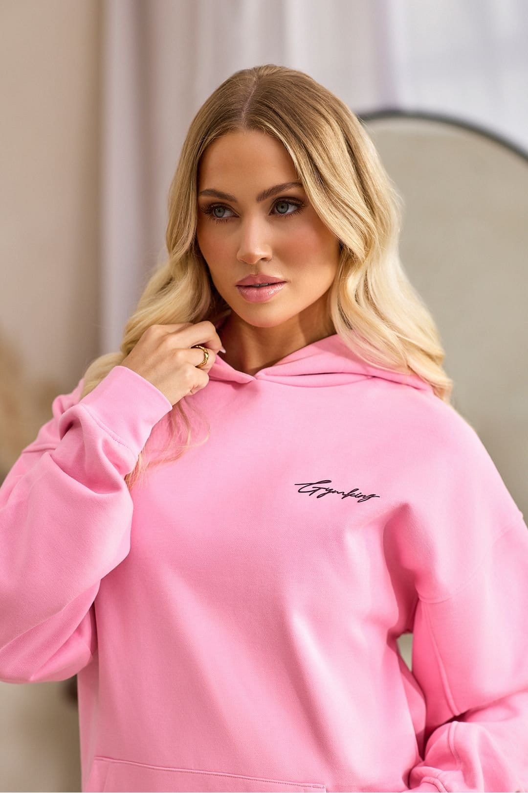 The Gym King Pink Script Mindset Hoodie for Women is made from cotton.