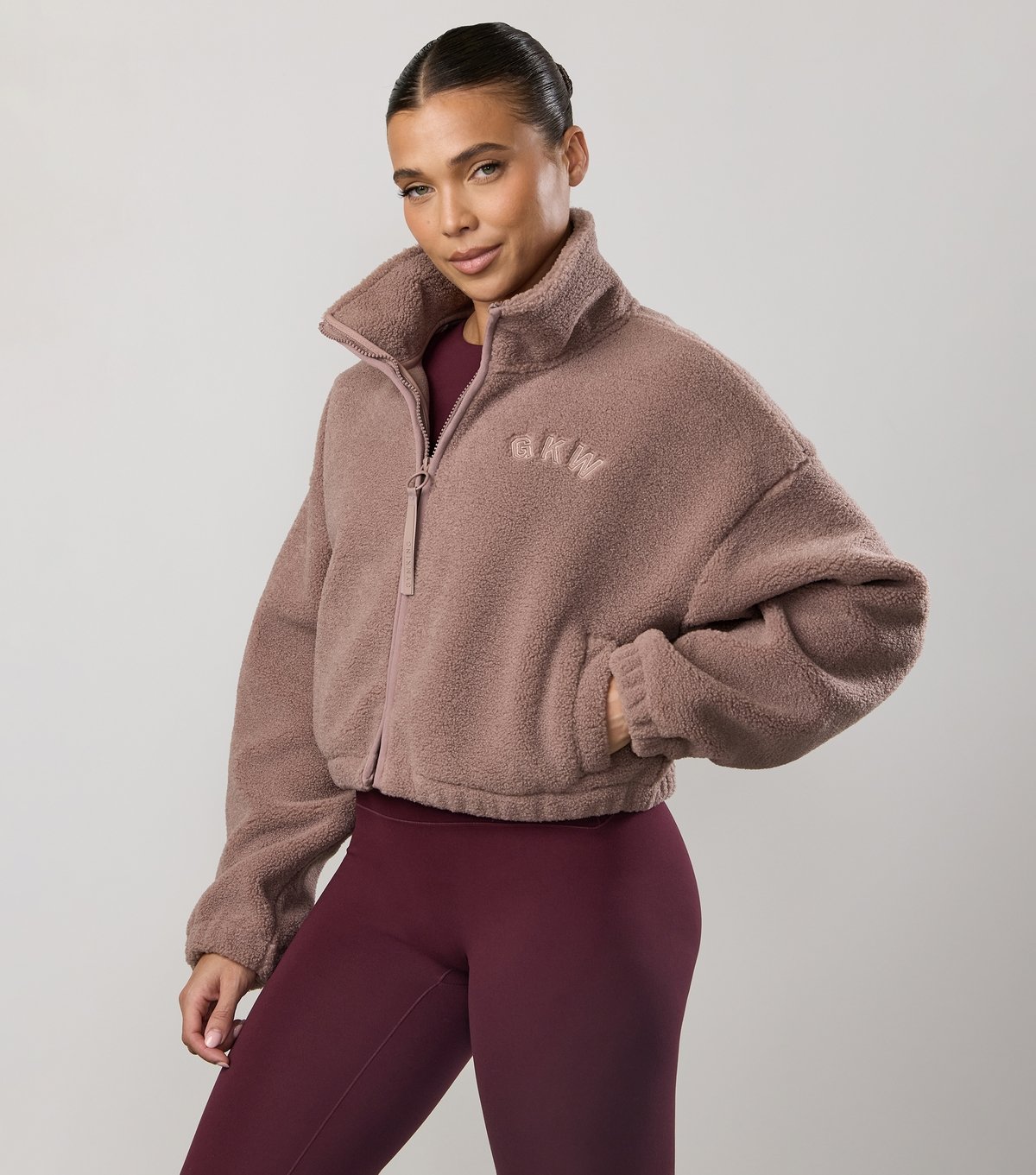 The Gym King Mid Brown Borg Cropped Full Zip Jumper is made from borg.