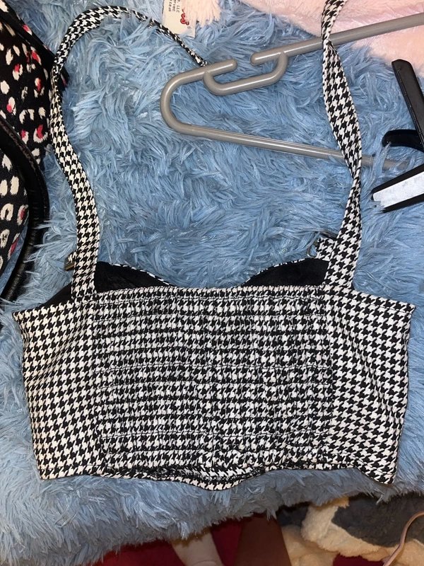 Crafted from houndstooth patterned fabric, this cropped cami top from H&M features adjustable buckle straps. Ideal for a casual chic look.