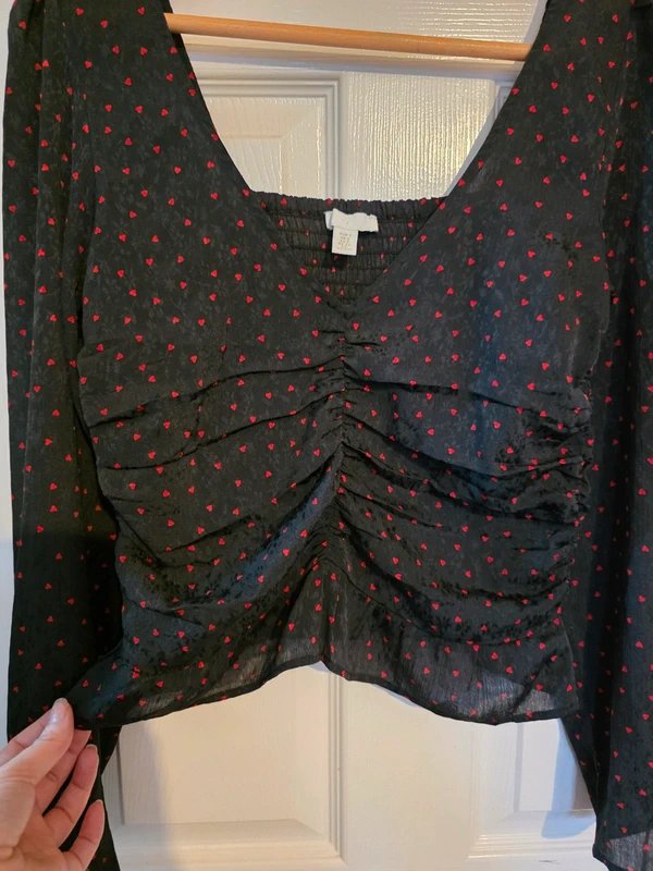 The H&M Heart Print Ruched Blouse is made from stretchy.