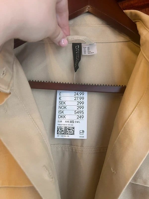 The H&M Stone Beige Utility Shirt Dress XS is made from cotton.