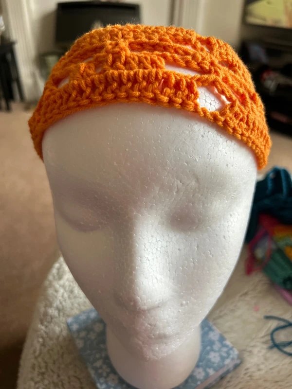 The Handmade Crochet Bohemian Headband in Orange is made from crochet yarn.