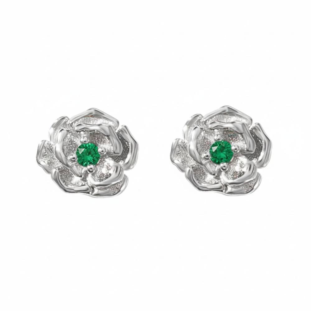 The Harfi Silver Hawthorn Birthstone Stud Earrings with Emerald is ideal for birthday, gifting, special occasion.
