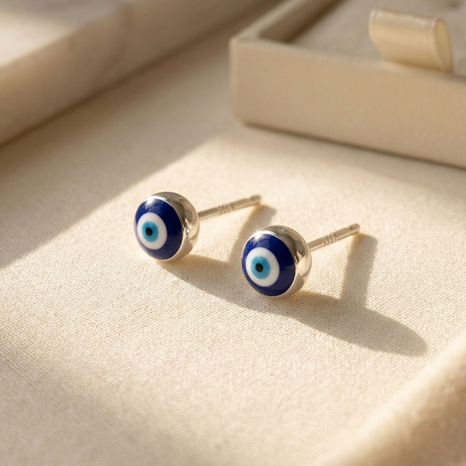 Embrace ancient symbolism with these Harfi Turkish Evil Eye Nazar Protective Silver Stud Earrings. Designed to shield the wearer from negativity while adding a touch of elegance to any look. Featuring a delicate yet powerful 4mm evil eye stone.