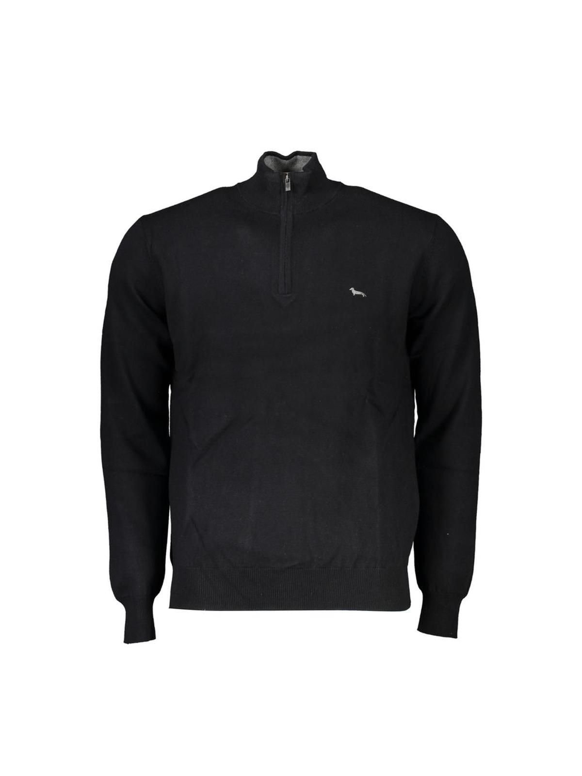 The Harmont & Blaine Men's Elegant Half-Zip Sweater in Black is made from cotton.