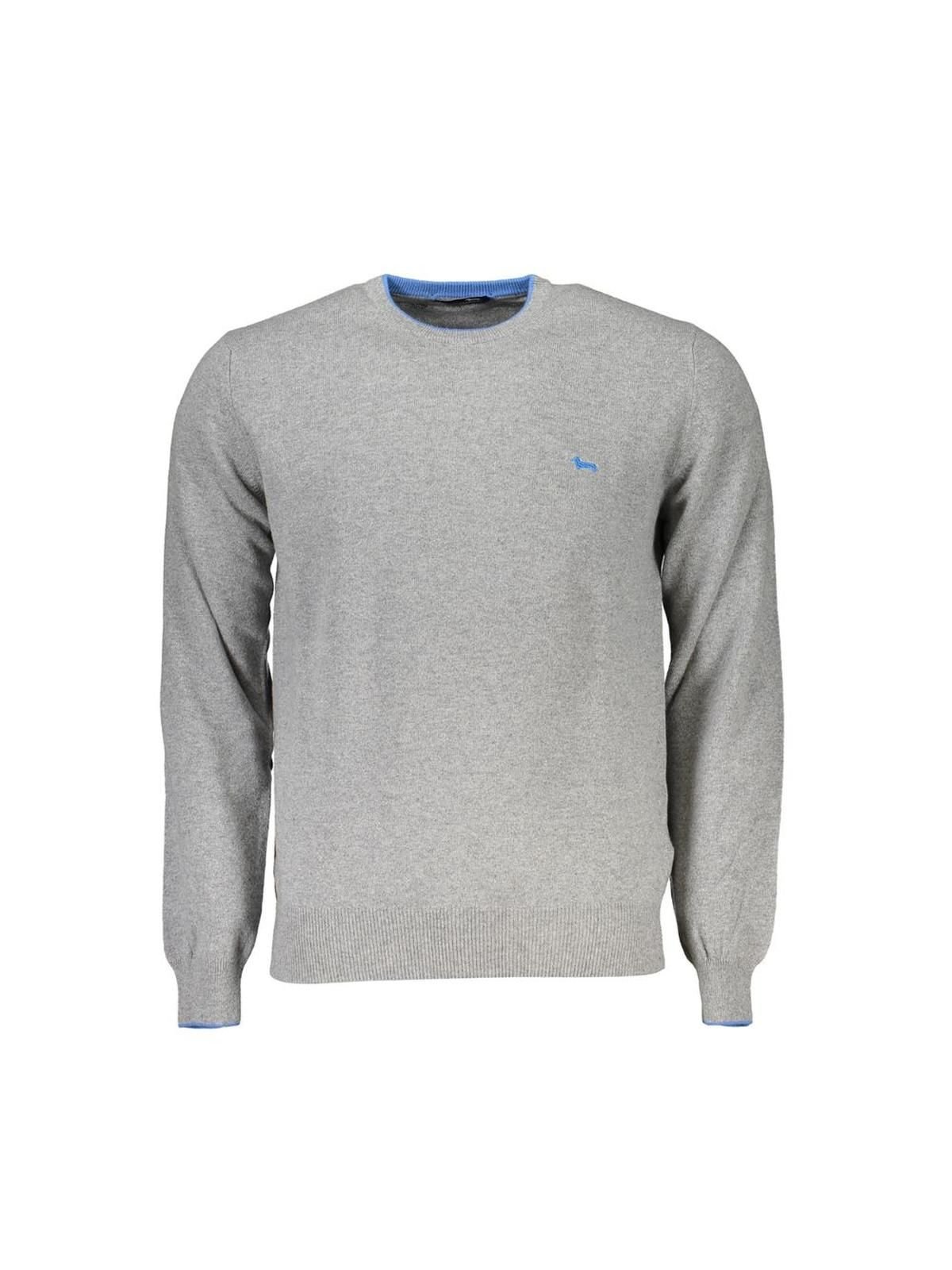 The Harmont & Blaine Grey Crew Neck Sweater with Contrast Details is made from cotton, polyester.