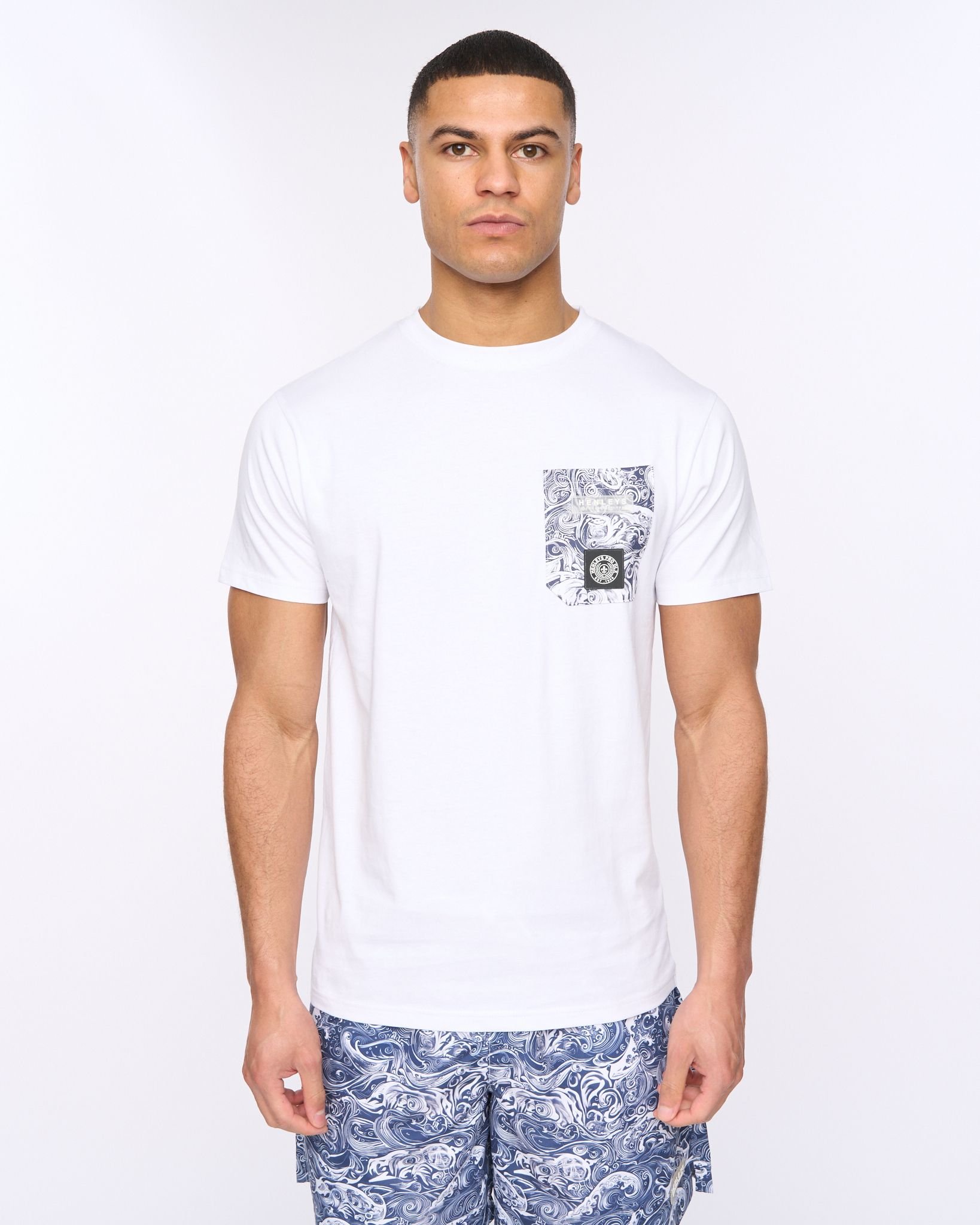 A crisp white T-shirt with subtle detailing for a refined look. Henleys' Henwave T-Shirt features a unique design on the chest pocket, adding a touch of sophistication.