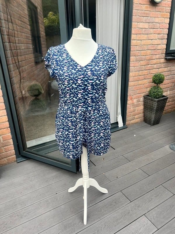 The Henry Holland Heart Pattern Playsuit in Pink/Navy is available in sizes XXL.